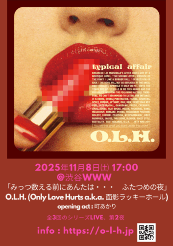 ★Only Love Hurts(a.k.a. 面影ラッキーホール)さんのワンマンライブに、オープニングアクトとして出演します!※2013年以来です!!